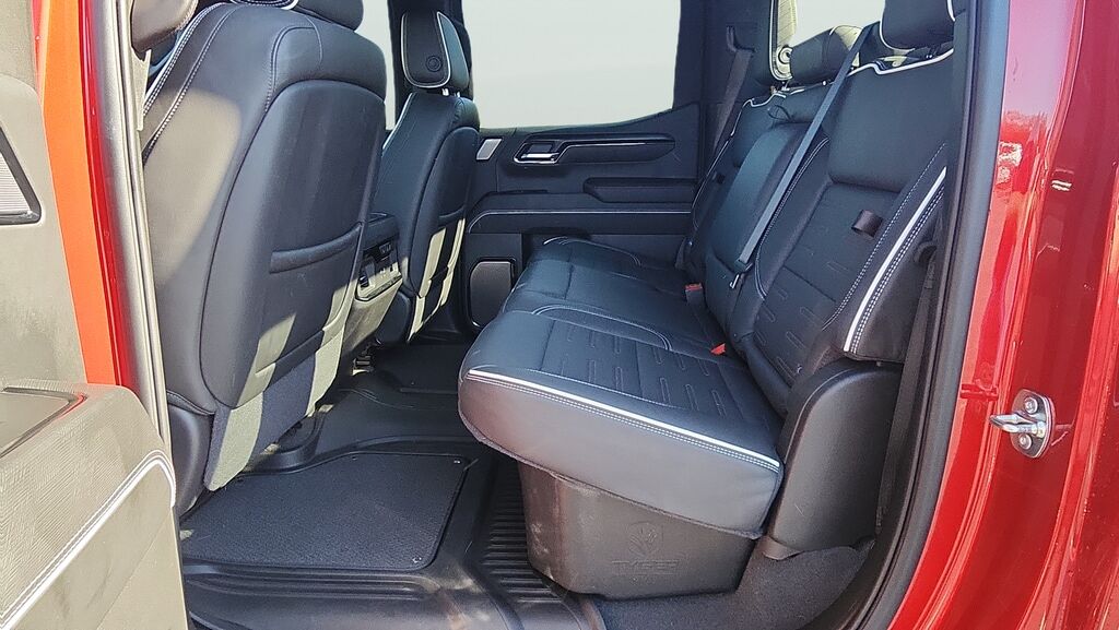 Clean CARFAX. 2025 GMC Sierra 1500 AT4X 10-Speed Automatic Volcanic Red Tintcoat 4WD 2025 GMC Sierra 1500 AT4X EcoTec3 6.2L V8 Obsidian Rush Leather. 10-Speed Automatic, 4WD, Obsidian Rush Leather. Odometer is 929 miles below market average! Dealer...