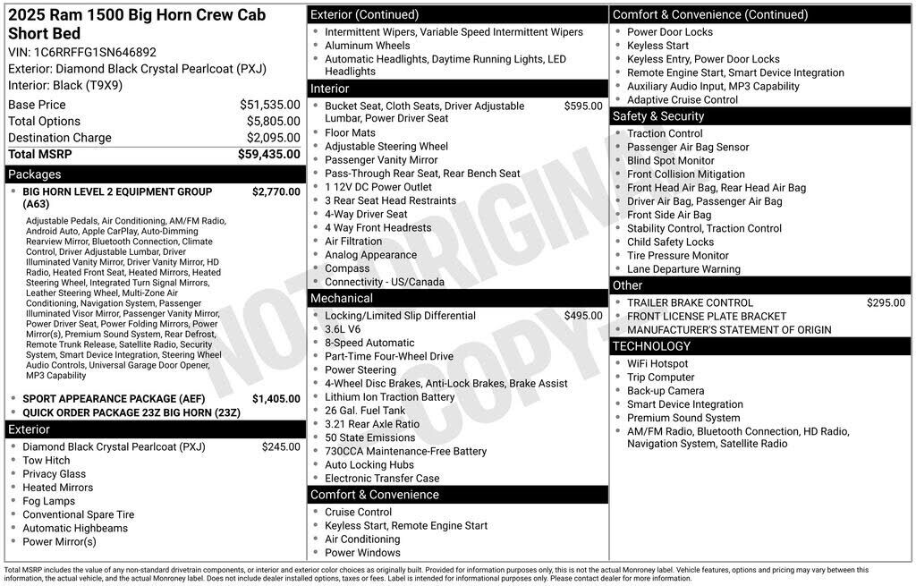 2025 Ram 1500 Big Horn/Lone Star Diamond Black Crystal Pearlcoat 4WD 3.6L V6 24V VVT 8-Speed Automatic Visit www.johnsonautoplaza.com for more information. Feel free to browse our inventory online, request more information about vehicles, set up a...