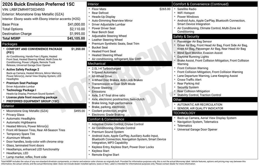 Comfort and Convenience Package