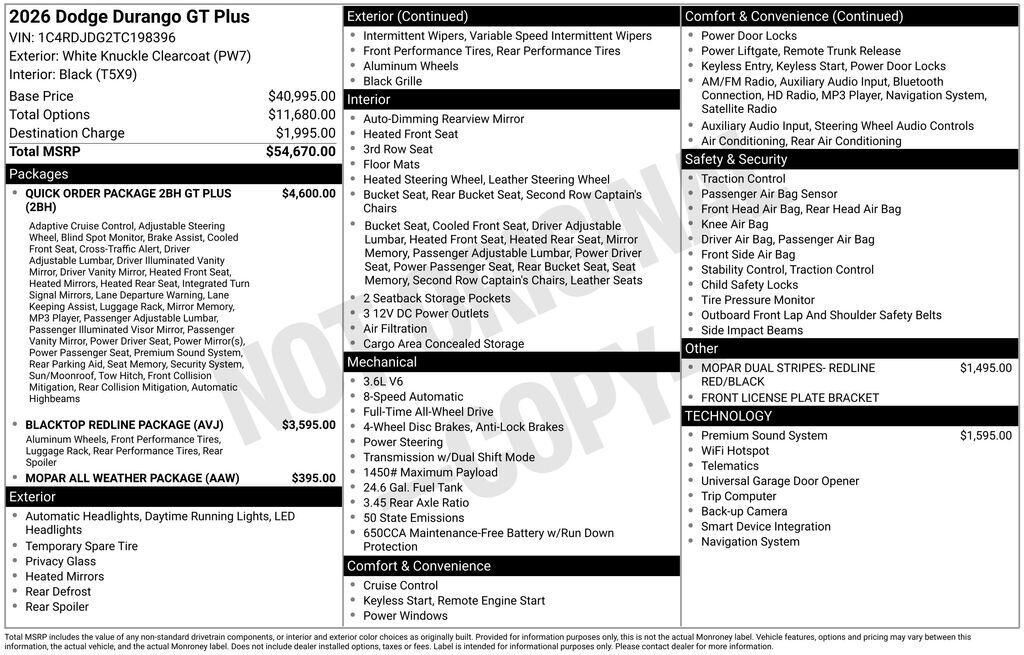 Come See Why It's Gotta Be NYE Chrysler Dodge Jeep Ram! Visit to learn more.White Knuckle Clearcoat 2026 Dodge Durango GT Plus AWD 8-Speed Automatic 3.6L V6 24V VVT AWD.Recent Arrival! Price Includes:$ National Engine Retail Bonus Cash . Exp. 04/30/2...