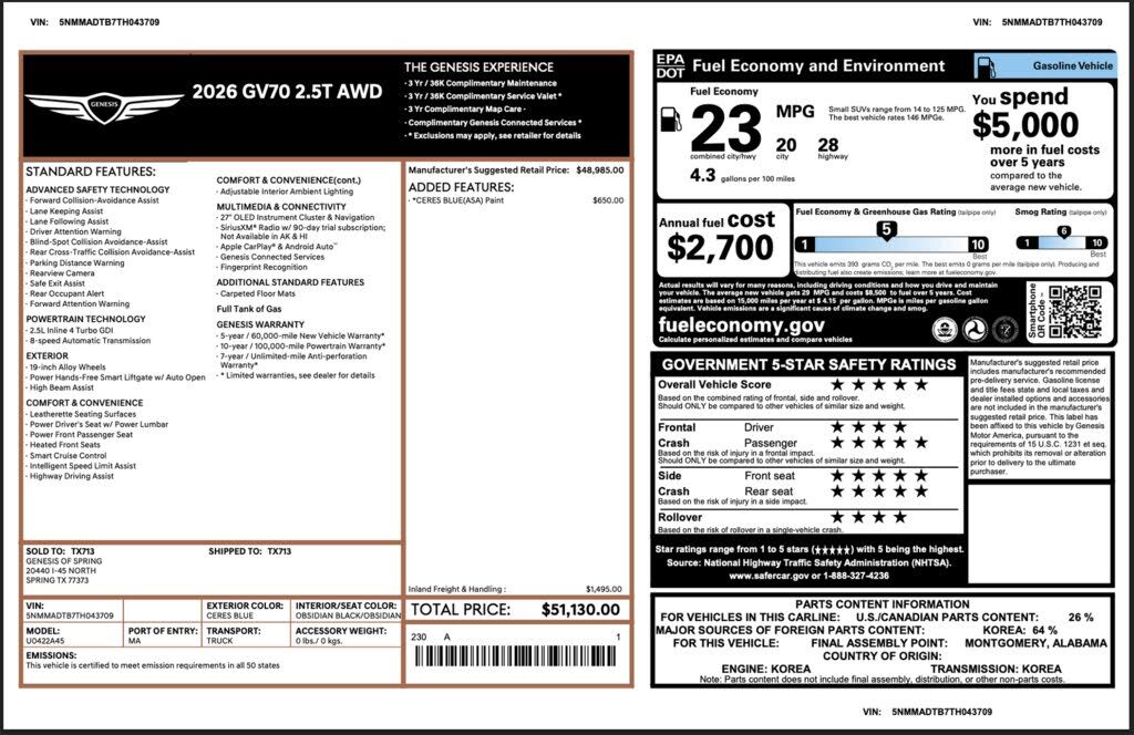 2026 GENESIS GV70