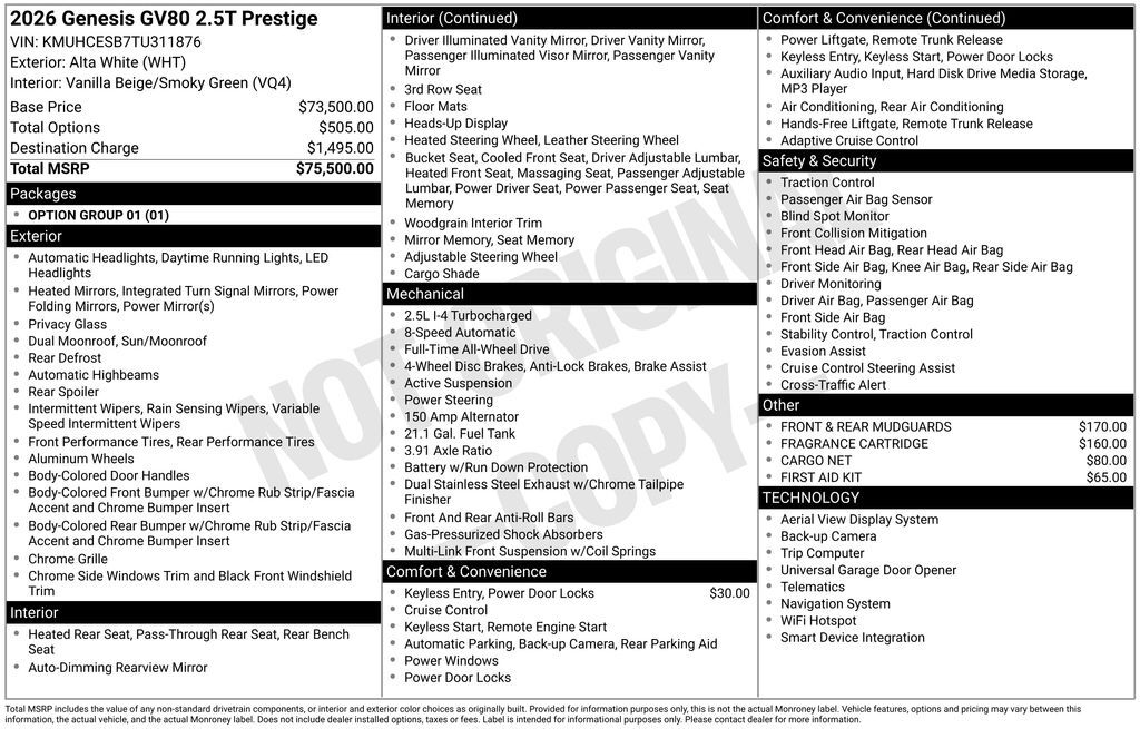 I'm interested in: 2026 GENESIS GV80