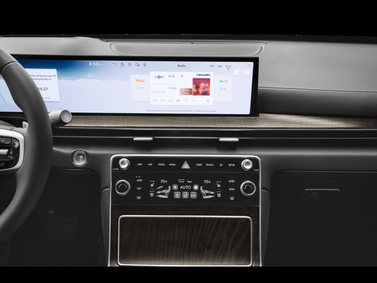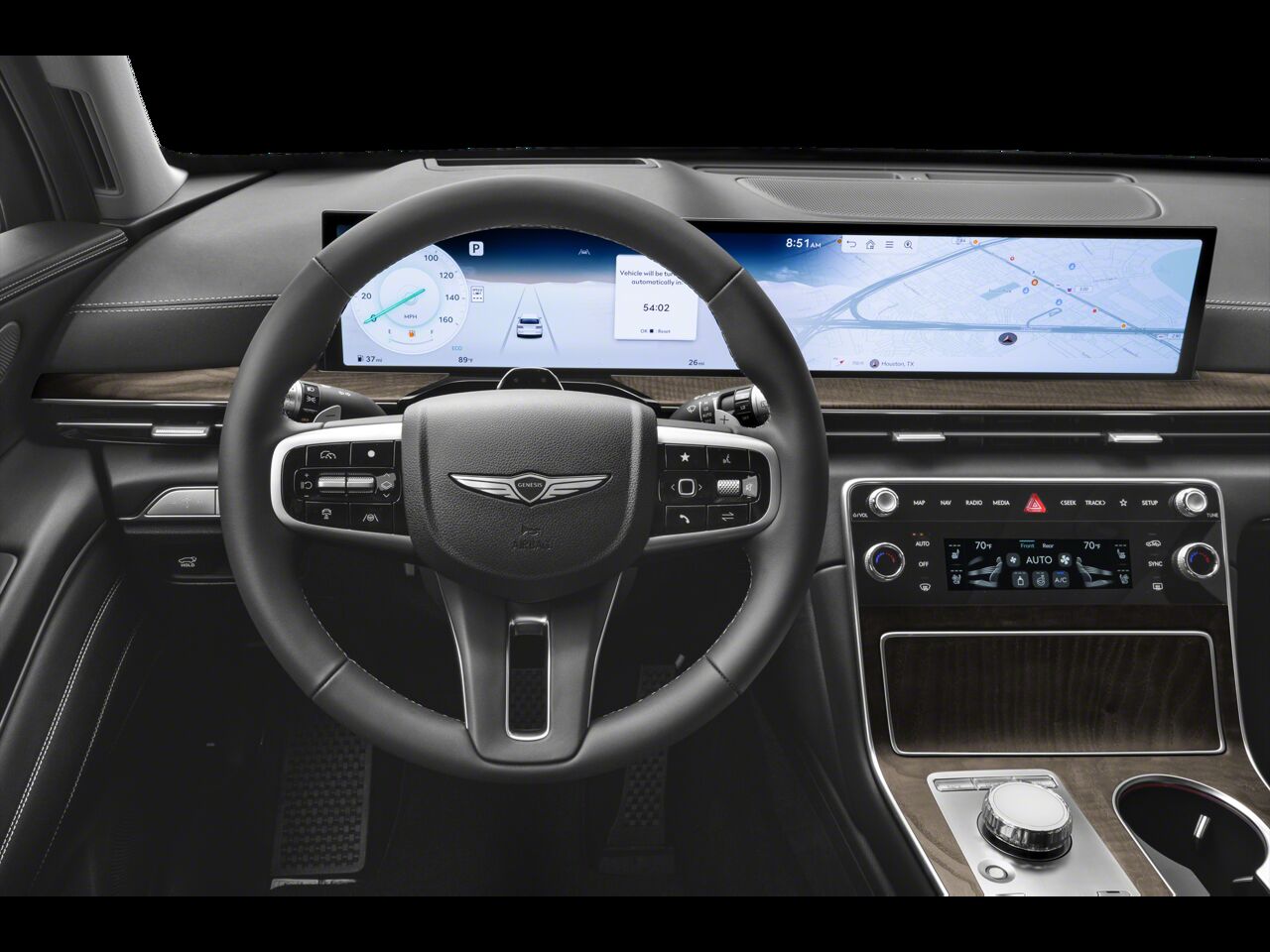 Radio: AM/FM/HD Radio -inc: premium audio w/12 speakers 27" integrated OLED instrument cluster and navigation system SiriusXM Radio w/90-day subscription (not available in AK or HI) cloud connected platform (cloud profiles connected routing dynamic voice recognition OTA updates) wireless Apple CarPlay wireless Android Auto Bluetooth® hands-free phone system w/audio streaming wireless phone charger Wi-Fi hotspot steering wheel controls USB and Genesis Connected Services