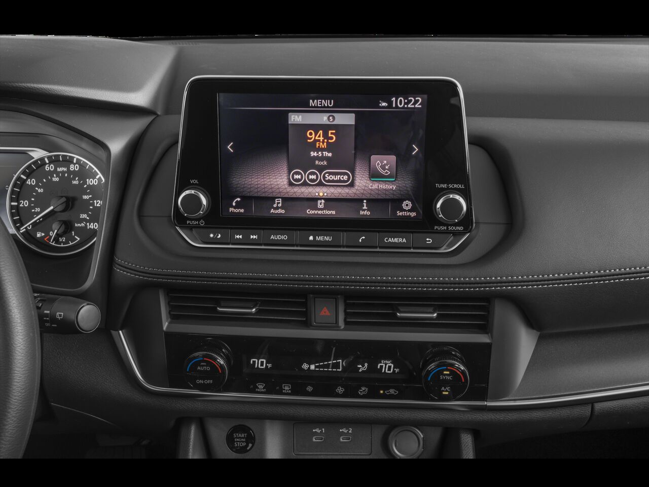 Radio: AM/FM NissanConnect -inc: 6 speakers plus 2 tweeters Apple CarPlay Android Auto 8" color touch screen display Bluetooth® 2 front USB type-C Wi-Fi hotspot and NissanConnect Services powered by SiriusXM