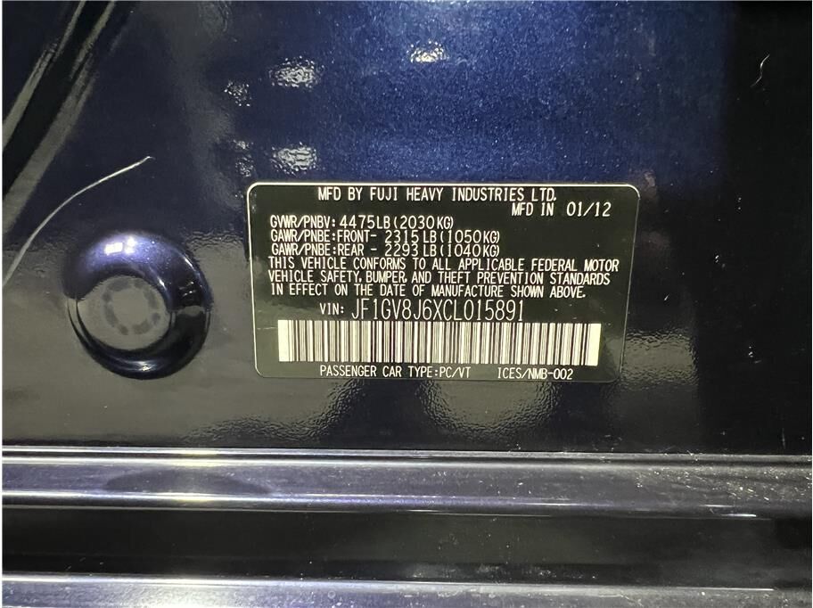 VIN JF1GV8J6XCL015891 may have been