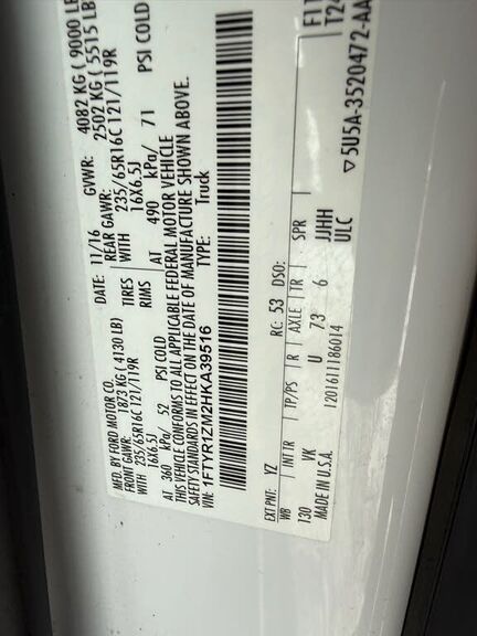 VIN 1FTYR1ZM2HKA39516 may have been