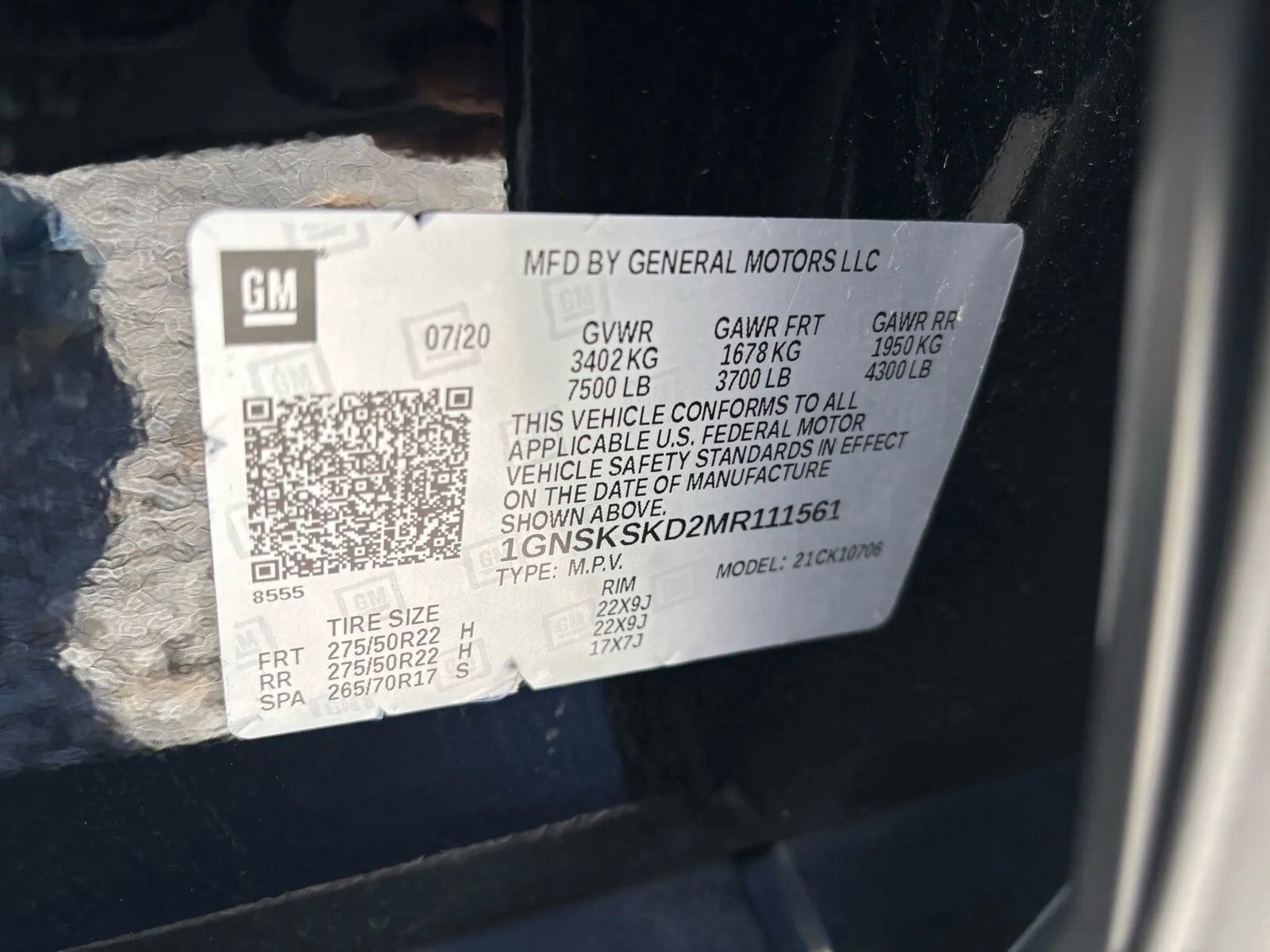 VIN 1GNSKSKD2MR111561 may have been